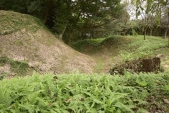 城の南には城主の家臣(かしん)(※4)の屋敷(やしき)の跡が残っていたと思われるあとがあります。この城は14世紀中ごろまで使われていました。