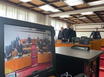 毎年恒例の「夢見る授業」は、立志式を迎える町立中学校の2年生、そして1年生と保護者を対象に開催されています。今年は、福岡ソフトバンクホークス元監督の工藤公康さんによる講話をオンラインで視聴しました。議員も参加できる範囲で、各自宅で視聴していただきました。