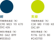 タグライン(ロゴマーク)は、「紺」と「黄緑」の「カラー表現」が基本です。
