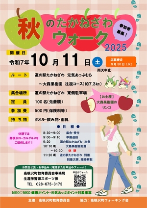 ホーム > 学び・文化・スポーツ > スポーツ > ウォーキング > 秋のたかねざわウォーク2025